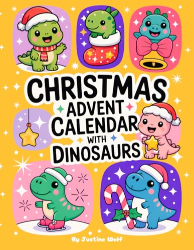 Christmas Advent Calendar with Dinosaurs: Coloring Book with 25 Simple & Festive Illustrations + Bonus Pages! Daily Holiday Countdown Fun for Kids and the Whole Family