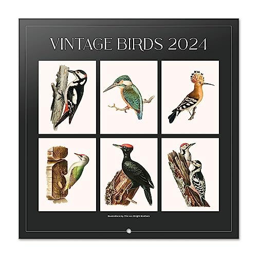 Grupo Erik Vintage Birds Wall Calendar 2024 12" x 12" | 12 Month Planner | Square Wall Calendar 2024 | Family Planner Calendar 2024 | Bird Calendar 2024 | + 4 Bonus Months