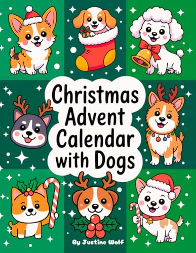 Christmas Advent Calendar with Dogs: Coloring Book with 25 Simple & Festive Illustrations + Bonus Pages! Daily Holiday Countdown Fun for Kids and the Whole Family