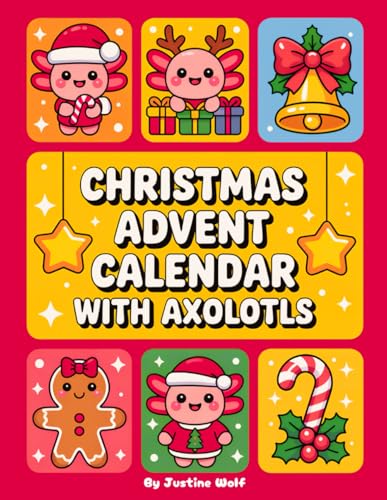 Christmas Advent Calendar with Axolotls: Coloring Book with 25 Simple & Festive Illustrations + Bonus Pages! Daily Holiday Countdown Fun for Kids and the Whole Family