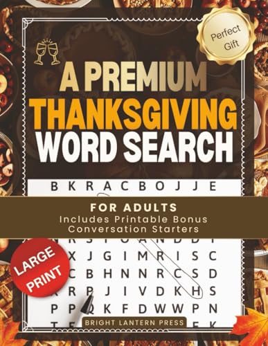 A Premium Thanksgiving Large Print Word Search for Adults: Holiday Word Searches Book for Hostess Gifts, Family Fun & Cozy Fall Gatherings — Includes Printable Bonus Conversation Starters