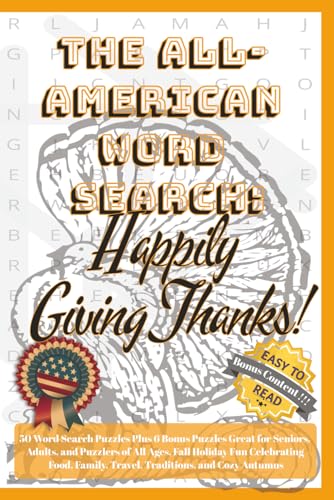The All American Word Search: Happily Giving Thanks!: 50 Word Search Puzzles Plus 6 Bonus Puzzles Great for Seniors, Adults, and Puzzlers of All Ages. ... Family, Travel, Traditions, and Cozy Autumns
