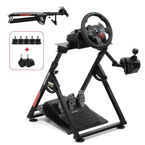 VEVOR Racerrattstativ, vikbart, för Logitech G923/G920/G29, rattstativ och fotpedalvinkel, bärbar körsimulatorcockpit av stål – Thrustmaster T248P, Fanatec, Hori, kompakt