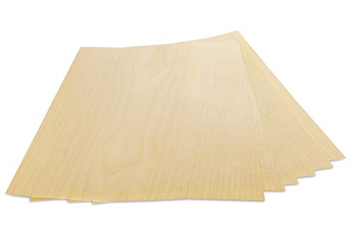 WoodPress Äkta björkträfanér – paket med 6 ark – A4-storlek (ungefär). 21 cm x 29 cm) - Faner för marketter, modelltillverkning och möbelreparation