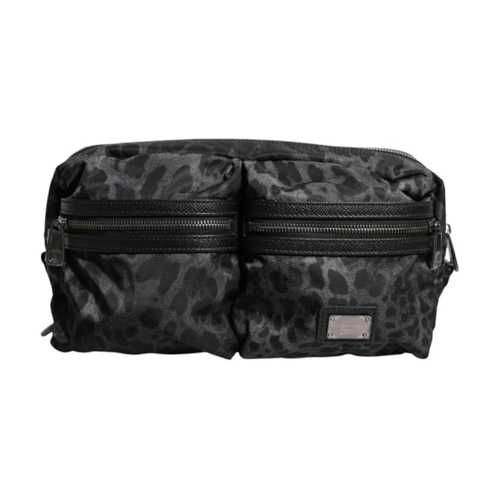 Dolce & Gabbana, Väskor , Herr, ONE Size, Läder, Leopard Logo Fanny Pack Bag
