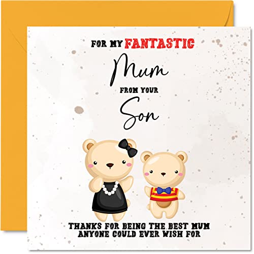 Särskilda födelsedagskort för mamma – fantasisk mamma – grattis på födelsedagskort för mamma från son, mors födelsedagspresent, 145 mm x 145 mm sentimentala mors dag gratulationskort till mamma
