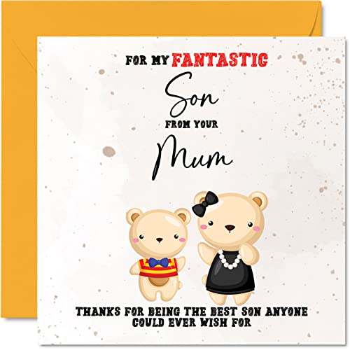 Särskilda födelsedagskort för son – fantasisk son – grattis på födelsedagskort för son från mamma, son födelsedagspresenter, 145 mm x 145 mm sentimentala födelsedagskort present till son