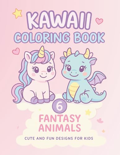 Kawaii Animals Coloring Book – Vol.6 Fantasy Animals: Magical Creatures and Cute Fantasy Animals | Kawaii Coloring Book for Kids Ages 3–8 with Easy and Fun Designs