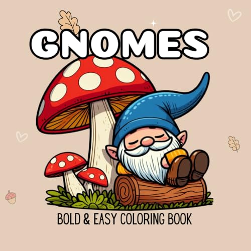 Gnomes Bold and Easy Coloring Book for Adults and Kids: Very Easy, Simple and Big Designs for Relaxation Featuring Adorable Fantasy Creatures, Animals and Cute Things