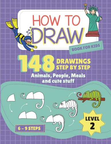 How to Draw for Kids Ages 8-12 – LEVEL 2: 148 Step-by-Step Drawings in 6 to 9 Steps | Fun and Creative Drawing Book with Animals, Fantasy, Food & ... and Focus | Includes Bonus Challenges.