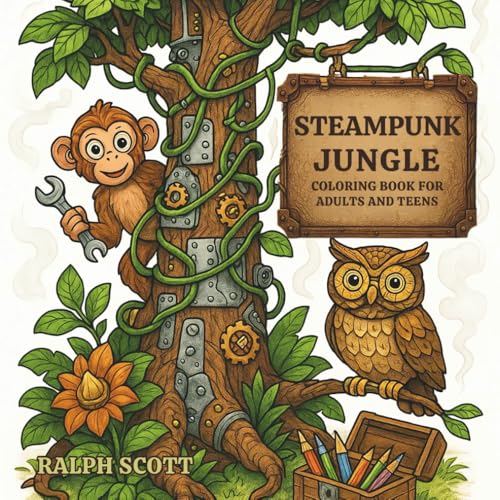 Steampunk Jungle: A Steampunk Adult Coloring Book with Fantasy Animals, Jungle Creatures, and Relaxing Designs for Stress Relief and Creativity