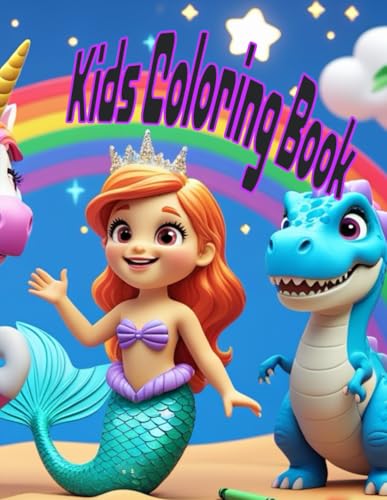 Easy Coloring Book for Kids Ages 3-6: Big Simple Unicorns, Mermaids and Dinosaurs: Adorable Fantasy Animals and Prehistoric Adventure Coloring Pages for Toddlers, Preschoolers and Children