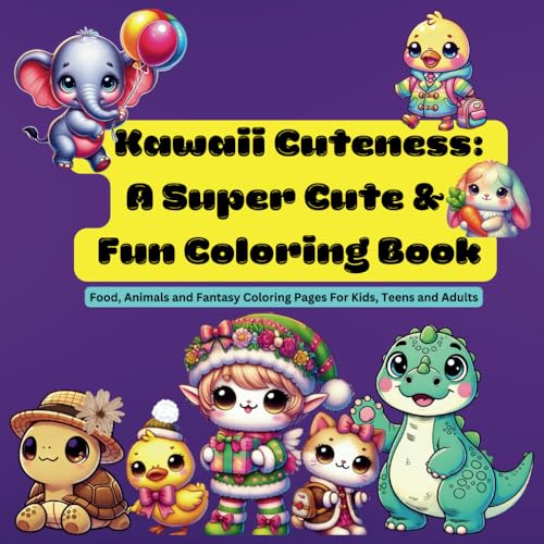Kawaii Cuteness : A super cute and Fun Coloring Book: Food, Animals, Fantasy Coloring Pages for Kids, Teens and Adults | 8.5 x 8.5 in | Perfect Gift for Birthdays, Holidays or any special occasion