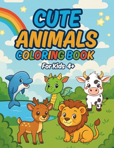 Cute Animals Coloring Book for Kids Ages 4+: 50 Fun and Easy Coloring Pages with Forest, Farm, Ocean, Jungle & Fantasy Animals – Great Gift for Boys and Girls Who Love Animals