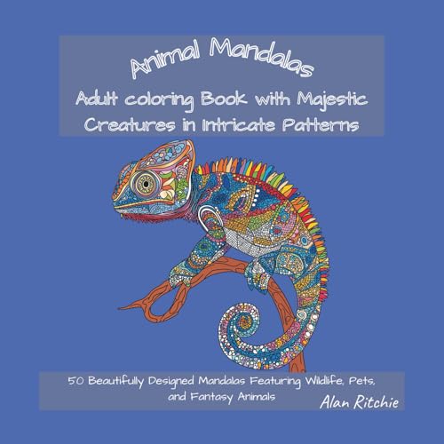 Animal Mandalas: Adult Coloring Book with Majestic Creatures in Intricate Patterns: 50 Beautifully Designed Mandalas Featuring Wildlife, Pets, and Fantasy Animals
