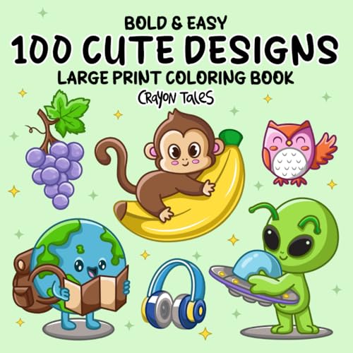 100 Cute Designs: Large Print Bold and Easy Coloring Book for Kids and Adults with Cozy Animals, Fantasy, Flowers, Food and More!