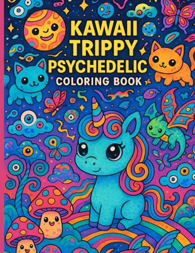 Kawaii Trippy Psychedelic Coloring Book with Fantasy Creatures: A Magical Psychedelic Adventure of Cute Fantasy Creatures, Mushrooms, Animals & ... Teens and Adults Who Love Whimsical Coloring