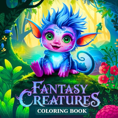 Fantasy Creatures Coloring Book: 50 Easy Coloring Pages for Both Adults and Kids, Featuring Adorable Fantasy Creatures, Magical Animals, Cute ... Unicorns, Clowns, and More for Relaxation