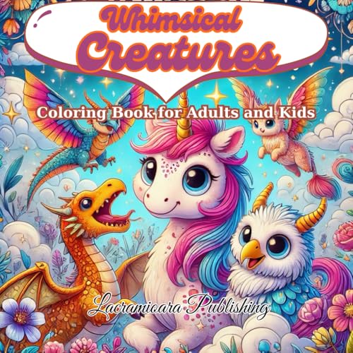 Whimsical Creatures: Coloring Book for Adults and Kids: 50+ Adorable and Easy-to-Color Pages with Fantasy Animals for Stress Relief and Fun