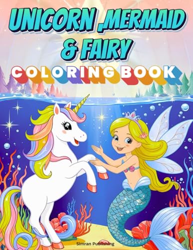 Unicorn, Mermaid & Fairy Coloring Book: for Kids and Teens Magical Fantasy Animals 105 Pages with Solutions Bold and Easy to Color: Inspire young ... solutions on every page, making magic and