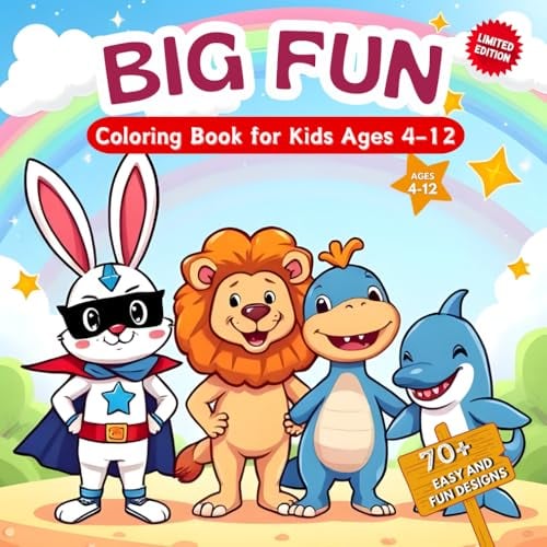 Big Fun - Coloring Book for Kids Ages 4-12: Cute and Easy Designs Featuring Superheroes, Animals, Fantasy Creatures, and More for Boys and Girls (75 Unique Designs).