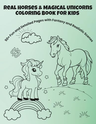 Real Horses & Magical Unicorns Coloring Book for Kids: 50+ Fun and Detailed Pages with Fantasy and Realistic Scenes: Perfect Horse and Unicorn ... Animals, Fantasy Creatures, and Coloring Fun