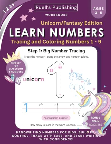 Learn Numbers Wordbook for Preschoolers: Unicorn/Fantasy Edition: Tracing and Coloring Numbers Workbook for Pre K, Kindergarten and Kids Ages 3-5
