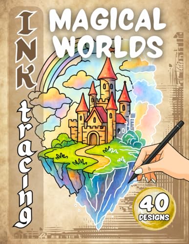 Magical Worlds Ink Tracing Book: Whimsical Pre-Colored Pages for Adults with Watercolor Fantasy Scenes and Cozy Art