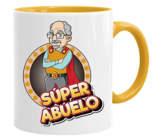 Superhero Mugg/Farfar Cup - Här dricker en Super Farfar - Kopp Frukost/Födelsedagspresent Idé för Grannies. 350ml Keramik/Original och rolig gåva
