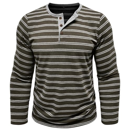 MakingDa Henley-skjortor för män långärmade kontrastränder knappar Henley hals pullover farfarströja normal passform andningsbar hållbar mjuk lätt vardaglig klassiska toppar, gRÖN, XL