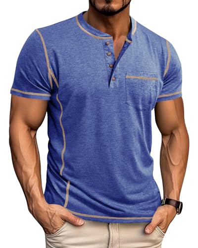 LAOARA T-shirt för män, kortärmad farfarströja, tunisisk krage, lätt vikt, med knappar, storlek M–3XL, Mörkblå, XXL