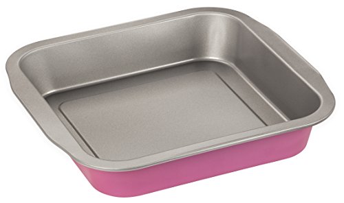 Zenker 7477 kreativ studio brownie-bakform, chokladkaka bakplåt med non-stick-beläggning, kakform: ca 270 x 260 x 50 mm, kreativ bakning (färg: rosa, silver), kvantitet: 1 st