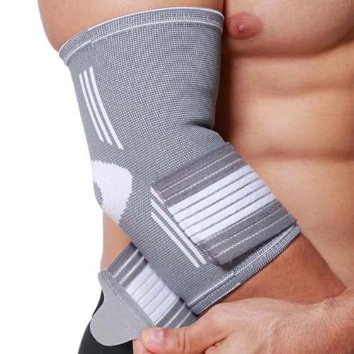Neotech Care - Armbågsstöd - elastiskt och andningsaktivt tyg - justerbart kompressionsband - för män, kvinnor, höger eller vänster arm (Grå färg, Storlek M, 1 enhet)