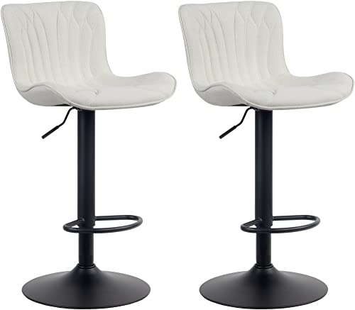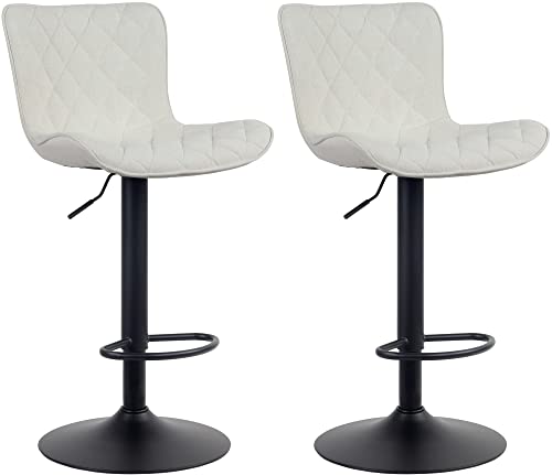 CLP Set med 2 barstolar Linus – höjdjusterbara barstolar – 360° snurrstolar med ryggstöd för kök och bistro, färg: kräm, material: tyg
