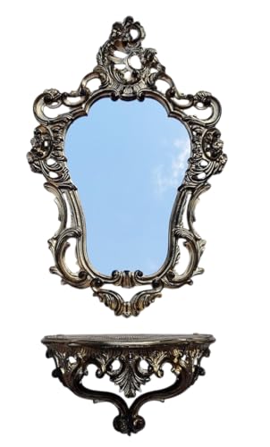 Lnxp 2-delat set i guld, svart, dubbel färg, bestående av väggspegel + väggkonsol, oval barock, antik 50 x 76 cm, hall, entrémöbler, konsol, hylla, spegel + vägghylla, 118 l