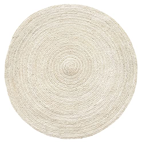 HAMID - Jute Matta Runda, Område Mattor Alhambra Halvvit Färg, 100% Naturlig Jute Fiber, Mjuk Matta och Styrka, Handvävd, Vardagsrumsmatta i Jute, Sovrum, Hall Matta, (100x100 cm)