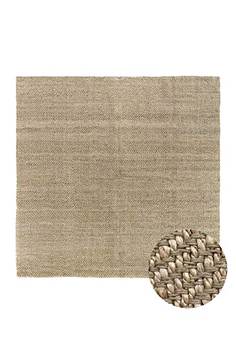 HAMID - Mattor Jute Alcazar, Område Jute Matta Naturlig Färg, 100% Naturlig Jute Fiber, Mjuk matta, Handvävd, Vardagsrumsmatta i Jute, Matsal, Sovrum, Hall, Ingång Matta, (250x250cm)