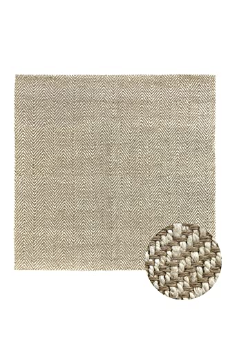 HAMID - Mattor Jute Alcazar, Område Jute Matta Naturlig Färg, 100% Naturlig Jute Fiber, Mjuk matta, Handvävd, Vardagsrumsmatta i Jute, Matsal, Sovrum, Hall, Ingång Matta, (200x200cm)