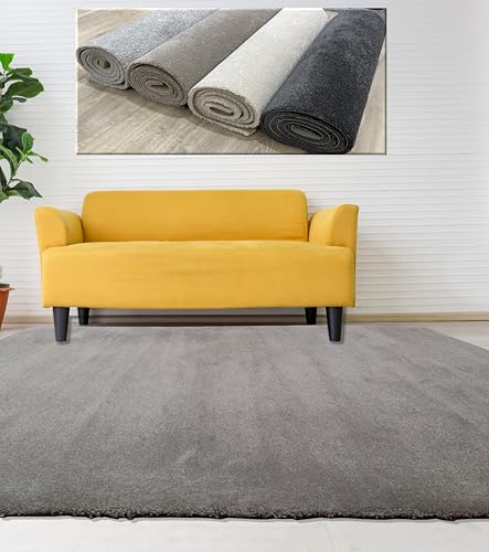 Teppich Boss Hög lugg, lång lugg, lurvig matta, M, enfärgad, melerad, vardagsrum, sovrum, kök, hall, enkel design, skimrande glansfibrer, fluffig, färg: mörkgrå, storlek: 160 x 230 cm