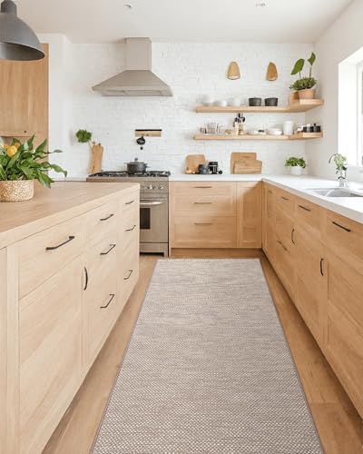 FÄRG & GEOMETRY Köksmattor halkfria tvättbara 65 x 240 cm, 4 mm tunn vävd gummibaksida kökslöpare matta, absorberande lättskötta golvmattor framför handfat, tvättstuga, hall, kaki