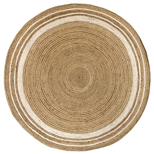 HAMID - Jute Matta Runda, Område Mattor Alhambra Naturliga vita Ränder Färg, 100% Naturlig Jute Fiber, Mjuk Matta och Styrka, Handvävd, Vardagsrumsmatta i Jute, Sovrum, Hall Matta, (150x150 cm)