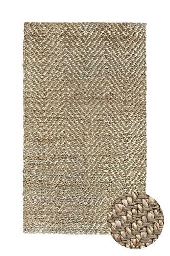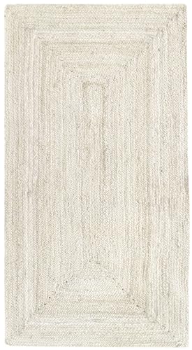 HAMID - Område Jute Matta, Mattor Alhambra Halvvit Färg, 100% Naturlig Jute Fiber, Mjuk Matta och Styrka, Handvävd, Vardagsrumsmatta i Jute, Sovrum, Hall Matta, (80x150cm)