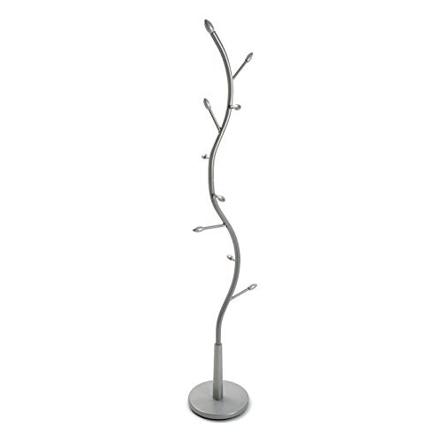 Versa Swindon golvstående klädhängare idealisk för hall eller entré, med 9 krokar eller hängare för kläder eller väskor för hall, mått (H x L x B) 185 x 32 x 32 cm, metall, färg grå
