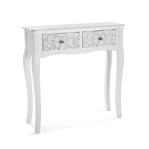 Versa Anjali Konsolbord, smalt hallbord för hall eller korridor, soffbord med 2 lådor, mått (H x L x B) 80 x 25 x 80 cm, trä, färg vit