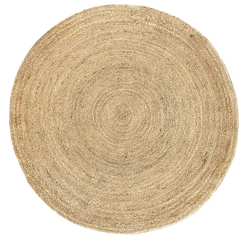 HAMID - Jute Matta Runda, Område Mattor Alhambra Naturlig Färg, 100% Naturlig Jute Fiber, Mjuk Matta och Styrka, Handvävd, Vardagsrumsmatta i Jute, Sovrum, Hall Matta, (100x100 cm)