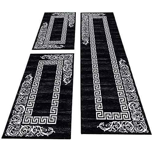 SIMPEX Sängmatta sovrum matta löpare hall köksmatta kort lugg 3 delar set sängskydd matta modern design mjuk fluffig och extra mjuk färg: Svart