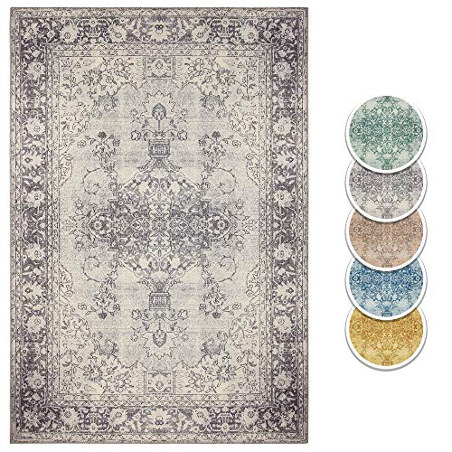 Hanse Home Orientalisk designmatta, Lakstudenten, använt utseende, vintageutseende, kant, ornament, mönster, vardagsrum, sovrum, kök, hall, kontor, halkfri, färg: grå, storlek: 80 x 150 cm