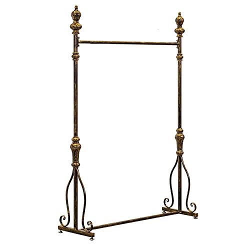 XINGLL Klädhängare, stativ, klädställ, vintage brons fristående hylla, plagghatt, handväska förvaringshängare för hall sovrum hall, industriell klädhängare (färg: brons, storlek: 150 x 40 x 175 cm)