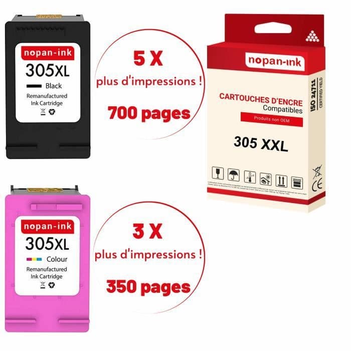 305XL tillverkad i Frankrike, 2 omgjorda bläckpatroner för HP 305 XL Svart / Färg kompatibla med DeskJet 2700 2720e 2720 2710