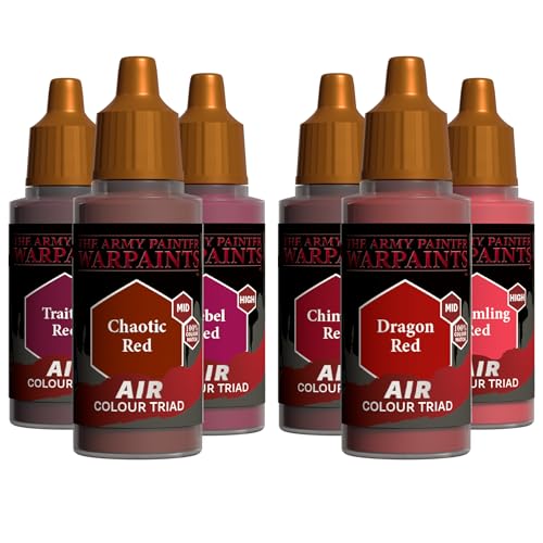 The Army Painter, Airbrush Primary Bundle Red, 2 röda färgtriader med 6 x 18 ml förtunnad akrylfärg för luftpensel - färg för en färgsprutpistol för D&D och Warhammer miniatyrer.